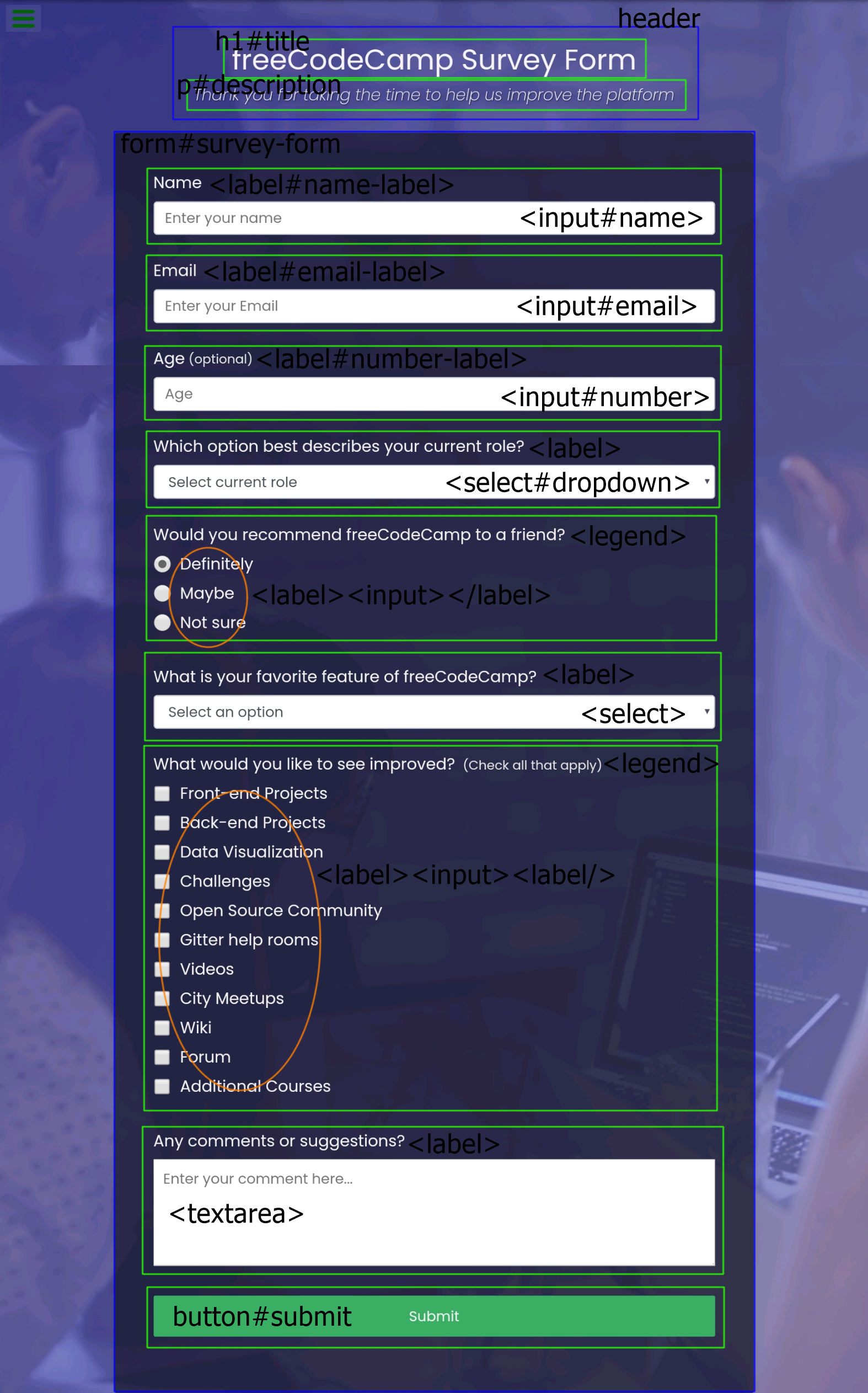 이번 프로젝트는 HTML에서 정말 중요한 Form을 다룹니다. Form이 중요한 이유는 Form의 내용물이 결국 서버에게 데이터를 건내는 데이터가 되고 이를 통해 서비스가 진행되기 때문입니다. 그럼 이전 리뷰와 마찬가지로 구조부터 먼저 분석하겠습니다.